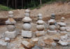 能仁寺川は谷の上方(西半部)では谷の南側を流れていますが、なかほどで谷を横断して北側に流れを変えます。谷奥から能仁寺川横断個所までを全面発掘したところ、五輪塔の残骸が多数出土するとともに、2基の中世墓が残されていました。