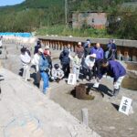 今年度は大川改修工事に伴い、平成18年から25年に調査した地点の隣接地を調査し、神社跡の広がりを確認しました。