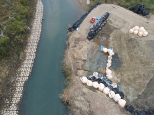 今回の調査では,日野川の川底で奇跡的に残った前方後円墳の一部を検出し,古墳に伴う埴輪列が出土しましたので,その成果を令和6年2月7日に記者発表を行いました。