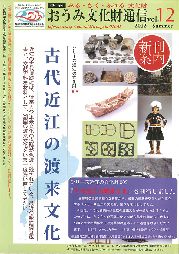 刊行物 TOP › 刊行物 › おうみ文化財通信 › おうみ文化財通信 vol.12 2012 Summer おうみ文化財通信 vol.12 2012 Summer 平成24年7月1日刊行 レトロ・レトロの展覧会&体験フェスタ2012 あの遺跡は今!Part15 講座 今年も開催してます。文化財講座『打出のコヅチ』 みる・きく・ふれる