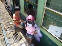 ラッピングは、特殊なフィルムにこちらでデザインしたイラストを京阪さんの方で印刷していただきます。それを、車両に霧吹きで水を吹き付け、バレンを使いながら貼り付けて行きます。上手くやらないと空気が入ったり、しわが寄ったりしてしまいます。やはり、大きかったり、長いシールになればなるほど難易度が高くなります。