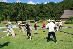 終了までの時間を測って、最短記録を競いました。長槍は予想以上に重く、子供たちだけではあつかいがなかなか難しかったのですが、お父さん・お母さんの助けもあって、信長軍の勝利で無事終了しました。