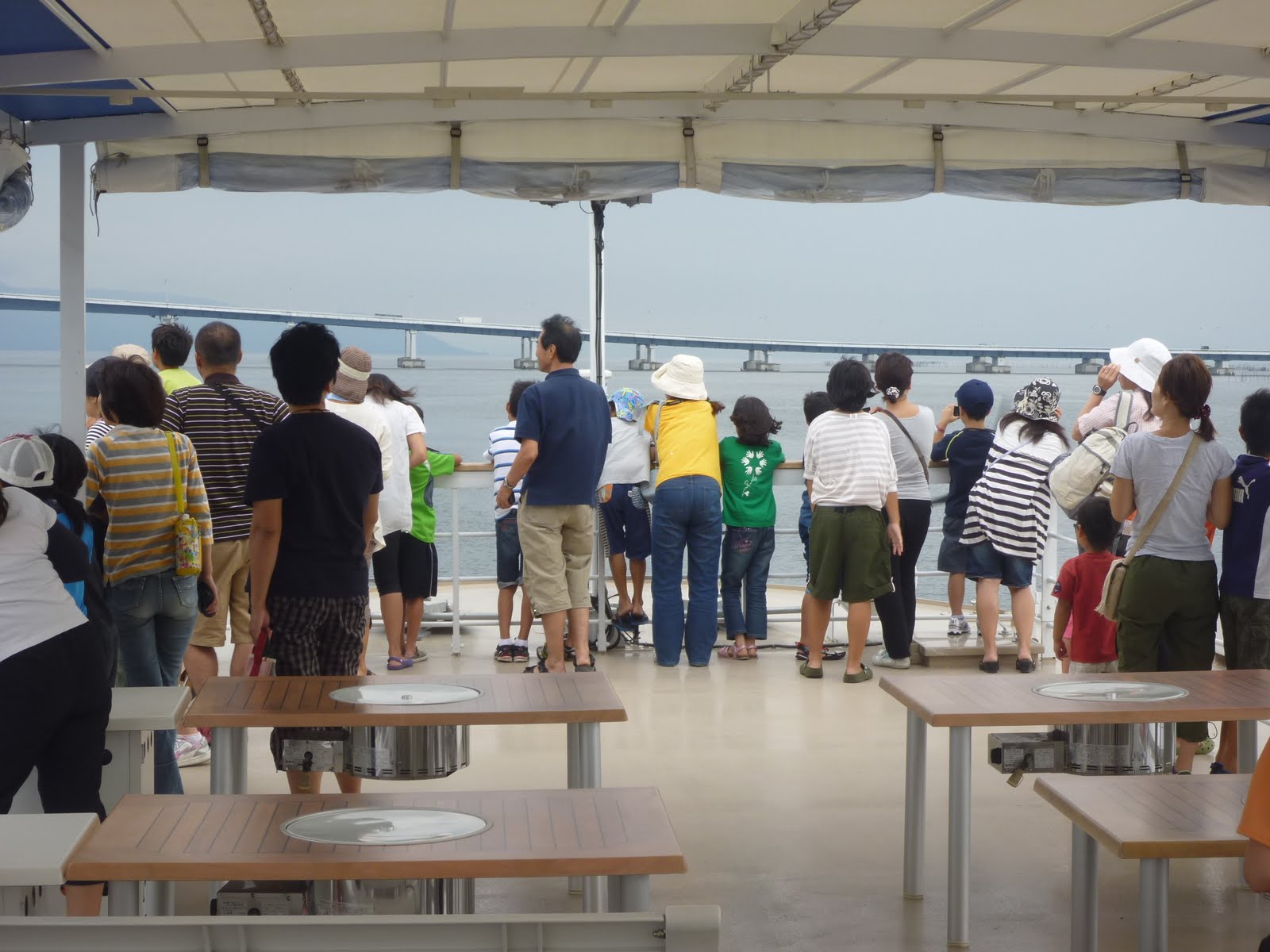 今日は、「歴史体験クルーズ2001 琵琶湖の漁業1万年の歴史に挑戦!」を開催しました。親子やおじいちゃん、おばあちゃんとお孫さんのグループ等で24組、65人の参加がありました。