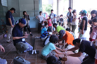 まずは13時より小学生高学年部門の開始です。16人のエントリーがあり、4班に分けて予選を行いました。結果は、1位が2分32秒、2位が6分37秒で、この2人が決勝戦進出。あとの14人は延長3分間でも着火できませんでしたが、そのうちの1人は、制限時間を5秒ほど経過した時点で着火できたので、繰り上げ当選で決勝進出となりました。決勝戦では繰り上げで決勝進出した子が、1分53秒と大会記録1分39秒に迫る好記録をたたき出し優勝!! 表彰式では、決勝戦の1位~3位と予選のブービー賞に、イオンモール草津さんと琵琶湖汽船株式会社さんからの賞品を贈呈しました。