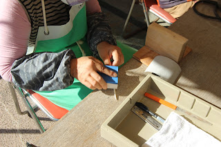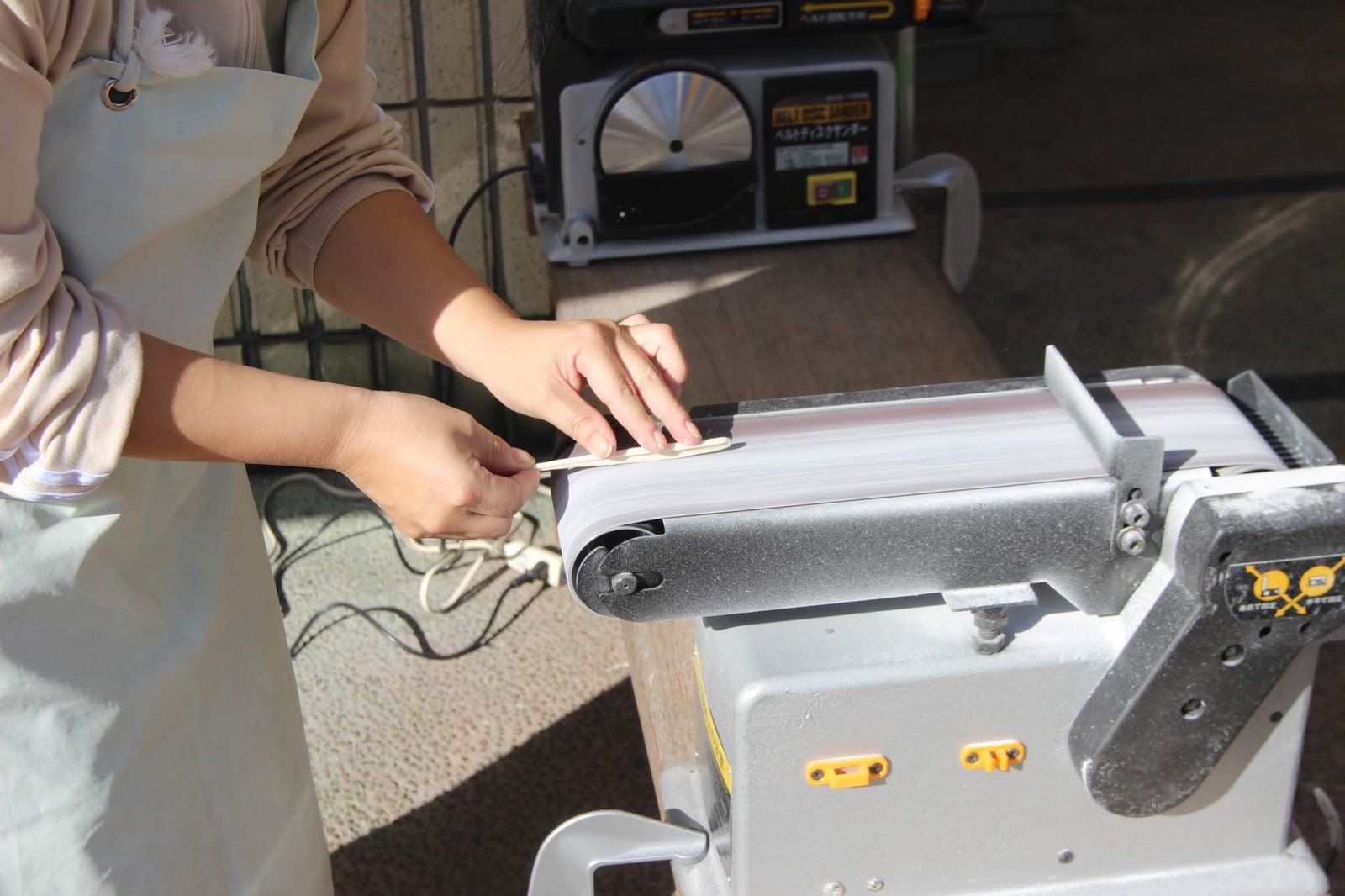 今日は秋晴れの素晴らしい天気でした。そのような中、骨角器製作体験を実施しました。