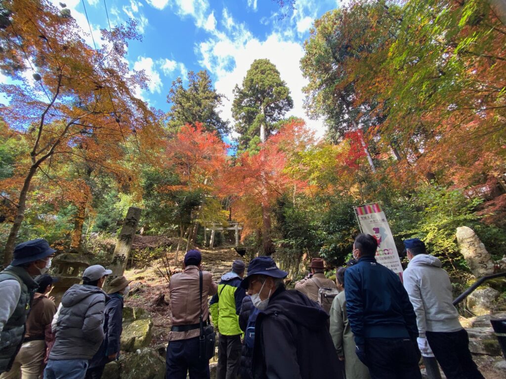 東近江市の石馬寺にはじまり、太郎坊宮、御澤神社とめぐり、最後は石塔寺でゴールしました。当日は天候にも恵まれ、また幸運にも美しい紅葉も鑑賞することができました。