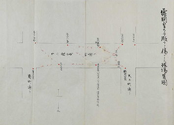 (写真3)事件現場の略図(行兇者近傍配置巡査取調調書のうち露国皇太子殿下ヲ傷ケタル現場略図部分)