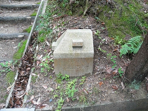 天王山古墳・甲山古墳・円山古墳は、子供の頃にはちょっとした秘密基地というか冒険心をくすぐる遊び場の一つでしたが、すっかりきれいに整備されました。甲山古墳・円山古墳では、横穴式石室に入ると自動的に照明が点灯して説明アナウンスが流れるので、石室内をじっくりと見ることができます。安置された石棺は、熊本県宇土半島産の阿蘇溶結凝灰岩で造られており、その巨大さに圧倒されます。また、円山古墳では、直接見ることはできませんが、生駒山系の一つである二上山産の石棺が使用されています。ちなみに、公園内のルート案内石標は、石室内の家型石棺をモチーフにしています。公園案内所裏の広場には大岩山古墳群の全容がよくわかる地形模型があり、案内所室内には甲山古墳の墳丘盛土造成の様子も生々しい断面土層の剥ぎ取りや副葬品の複製品などが展示されています。管理をされている地元シルバー人材のおじ様の話も聞けるかも・・・