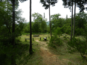 信楽高原鐵道の紫香楽宮跡駅から北西へ約1㎞、国道307号線「牧東」交差点から北へ約500m進むと、松林に覆われた丘陵地に残る史跡紫香楽宮跡内裏野地区にたどり着きます。ここは、奈良時代中頃に聖武天皇が紫香楽宮で大仏造営を行った甲賀寺の有力な候補地となっています。