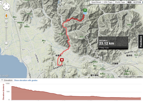 【自転車】グリーンパーク山東から23km・下り2時間/上り5時間?