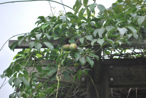 ちなみに、「むべ」は、アケビ科ムベ属の常緑つる性木本植物で、「郁子」・「薁」などと表記します。現在も、境内には「むべ」が育てられています。私がお参りにいったときには、ちょうど棚に「むべ」の実がなっているのをみることができました。