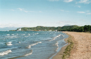 千々(ちぢ)の松原は、彦根市が市民に公募して平成7年に選定された新名所琵琶湖八景の1つです。新名所琵琶湖八景にはこのほかに、彦根城、夢京橋キャッスルロード、芹川堤けやきみち、荒神山、石寺・多景島、佐和山、中山道があります。松原の浜は、彦根港から米原市磯山までの約1kmにわたって広がっています。水泳場として親しまれているほか、夏には鳥人間コンテストの会場となり、冬には琵琶湖に吹く強い風でウインドサーフィンを楽しむ人たちで賑わいます。