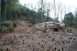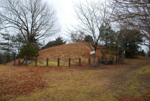 天狗前古墳群と谷を挟んだ反対側の山麓には、定石古墳群があります。地元の方々によって周囲の竹も伐採され、また看板も立てられているため、とても見学しやすくなっています。