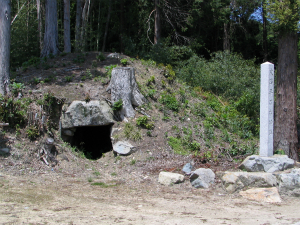 また、定石古墳群から北へ向かって少し歩いたところには、平石古墳群があります。道路に向かって石室が開口した古墳の脇には「史蹟平石古墳群」の石碑も建てられています。雪野山の周囲をぐるりとまわるだけで多くの古墳に出会うことができますよ。