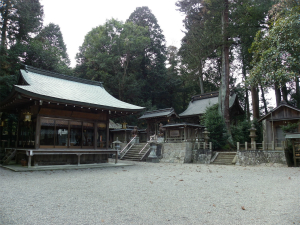 鶏鳴の滝から国道422号へ戻る途中にあります。笹ヶ岳を元宮とし、その神籬(ひもろぎ:神様の拠り所)として東方に山頂を仰ぐ場所につくられたお社だそうです。祭神は素盞鳴命(すさのおのみこと)、本殿は三間社流造の落ち着いた雰囲気の神社です。笹ヶ岳に登れなくても、ここにお参りすると山への思いは届くのでしょう。