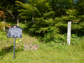 與志漏神社から鶏足寺跡向かう旧山道の左手山中に、滋賀県内ではもっとも古い時期(7世紀前葉)の製鉄遺跡が見つかっています。炉跡は石碑の建つ上の平地にあり、岩盤をはつって掘り窪めて炉床の基底部としており、製鉄炉としては未熟な構造でした。