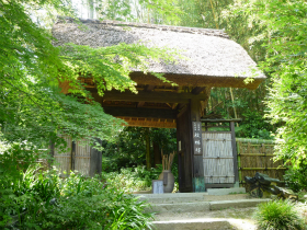 お寺の駐車場で車を降り、質素な作りの総門をくぐれば、竹林が広がっています。そこから五分ほど歩くと、表門にたどり着きます。この表門の周辺も紅葉がたくさん植えられており、紅葉のシーズンは庭園と並んで見どころとなっています。表門をくぐるとすぐに書院があり、その脇をぬけると庭園を散策することができます。