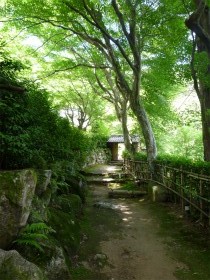 「私が興味をひいたのは・・・(中略)いきなり山へつづく急勾配に作ってあり、よく見ると、それは古墳を利用してあるのだった。横の方に、羨道も現れている。その石室の巨大な蓋石を、そのまま庭石に使ってあるのが、不自然ではなく、日本庭園の生い立ちといったものを見せられたような感じがする」。これは白洲正子さんの『かくれ里』の「石の寺」に登場する教林坊の庭園の一節です。