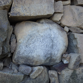 さらに、使われている石の種類別の割合は、石垣の場所により異なっているようです。天守閣の石垣には大きな花崗岩の石がいくつか使われていますし、花崗斑岩はあちこちのの石垣に少しずつ使われていました。なかでも注目できるのは黒門の石垣です。ここの石垣には、白っぽい花崗岩が多く使われていました。この違いに何らかの意味があるのかもしれません。