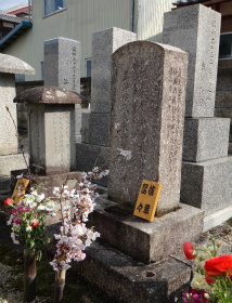 華やかで力強い桜木を存分に描いた瑟瑟は、天保3年(1832)に54歳で世を去りました。夫の石居信章(彦根藩士の三男)は、瑟瑟より約20年早く他界していましたが、二人一緒のお墓が、川合寺村の西蓮寺に残っています。西蓮寺では、瑟瑟とその画業を偲び、2003年より毎年、4月の第1土・日曜日に、瑟瑟の作品を本堂に飾り、関連の講演や地元作家の工芸作品などの展示を行う「桜画展」を開催しています。外では桜が舞い散り、本堂では美しい桜の作品を堪能できる、とても贅沢な催しです。