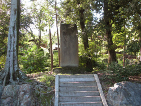 ちなみに、弘文天皇陵の南側にある三井寺境内には、「籠手田君頌徳之碑」碑が、駐車場近くの大門から金堂へと向かう途中の左手にあります。高さ3.48mもある大きな石碑ですが、この碑は籠手田氏の没後、滋賀県政の功績をたたえ、明治35年3月に有志によって建碑されました。