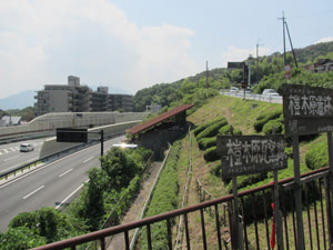 B-4号窯 道路法面に移設され、斜めの屋根がある所です。