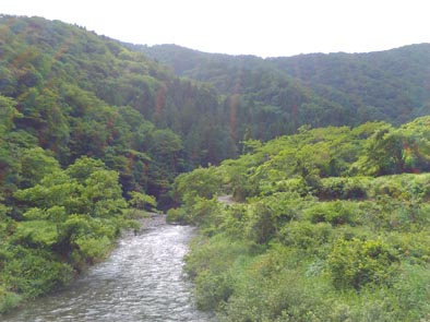 今から35年程前、高時川(写真1)上流域にダム建設の計画が立ち上げられ、これに伴い小原・田戸・奥川並・鷲見・尾羽梨・針川・半明の7地区が水没することとなりました。私は平成5年度に今の職場に就職したのですが、当時からこのダムの発掘調査の話しがささやかれておりました。「もしかして若い内は遠い現場に行かされるのでは?」などと勝手に思い、『滋賀県遺跡地図』を片手に何度か水没地区の遺跡を見に行ったりしました。「行け、という命令が出たらどうしよう」と不安に思う一方で、「いろんなところに行けてちょっと楽しいかも」などと思ったりもしました。結局、本格的な発掘調査は行われなかったのですが、何度かムラに訪れたときの思い出を、この場を借りてお話させてください。なお、今回載せている写真は、平成27年5月に訪れた際の写真で、平成7年~8年に訪れたときの写真は引っ越しのときなどに行方不明となり、残念ながらお見せできません。また探しておきます。