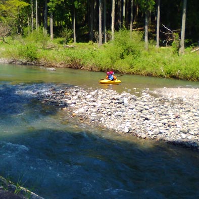 すっかり寂しくなった高時川上流の村々ですが、きれいな渓流には釣りやカヤックを楽しむ人たちがいました(写真5)。