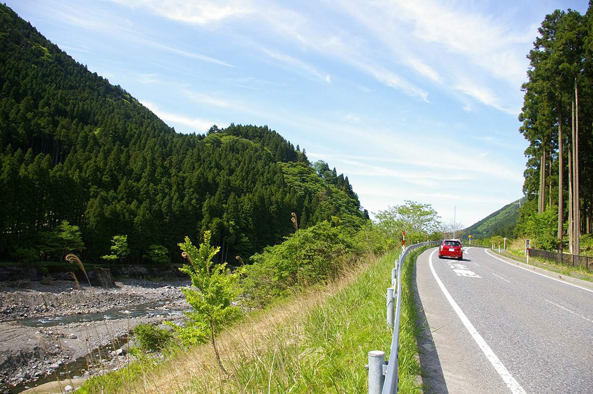 ・大津より国道161号線を北上、琵琶湖大橋交差点で左折、途中で国道367号線に合流、あとは上記と同じ。