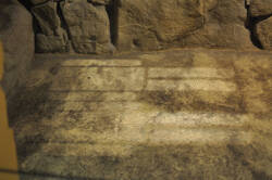 さて、小中学生の団体が見学に来ると必ず使うセリフがあります。それがタイトルの「あ!踏んでる!」です。これは、当館の第一常設展示室入り口すぐ右側にある、古墳の石室の実物大模型で使うセリフです(写真1)。この模型は、東近江市にある八幡社古墳群第46号墳の3つある石室のうち、第1石室を再現したものです。八幡社古墳群については近江名所圖会第19回に掲載されていますので、詳しい内容はそちらをご覧ください。