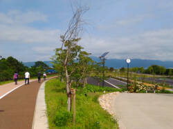 廃川となった旧草津川ですが、ここ数年でその象徴的な巨大な堤防が姿を消しつつあります。草津市さんも跡地利用に力を入れており、様々な事業を展開しています。JR琵琶湖線と国道1号と交差点のトンネル部分周辺の堤防は撤去され、湖南幹線道路と交差する県立草津高校の北側などの堤防も撤去されました。そして、かつての周辺の家の屋根より高い壁のような堤防は姿を消し、平地化しつつあります。