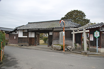 また羽田陣屋跡(大庄屋久保家屋敷)は、東近江市上羽田地区の中心部、円通寺の北側に位置しています(写真2)。仙台藩が1664年に設立したことが分っていて、その規模は東西54m、南北133mに及ぶ大規模なものであったと伝わっていますが、現在は同地に長屋門と、陸奥国一宮・盬竃神社から陣屋の鎮守として勧請された盬竃神社が遺っています。