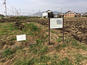 金貝遺跡は東近江市八日市に所在する遺跡です。愛知川中流域に形成された扇状地の左岸に位置しています。この遺跡からは平成20年に行われた発掘調査で、奈良時代後半の神社本殿と考えられる建物が見つかりました。