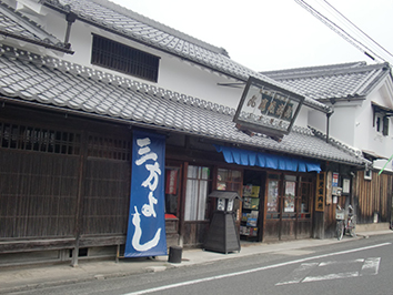 「近江日野商人館」から、東側に15分ほど歩いた街道沿いには、観光案内や特産品の販売、休息所を設けた、「日野まちかど感応館」(写真2)があります。この建物は、江戸時代に日野椀に代わる商品である合薬「万病感応丸」(まんびょうかんのうがん)を製造した正野玄三が営んでいた薬店だった場所です。奥に復元された旧包装場(薬を梱包していた場所)では、薬業に関する資料を展示しています。