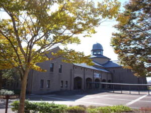普段の安土城考古博物館は、少し濃い目のベージュ色をしたレンガ積み風の壁面に覆われています。地中海沿岸の中世の修道院を意識して設計されただけあって、けっこう意外に魅力的。私は今、博物館の一角にある〈調査課安土分室〉に詰めていますが、休憩時間や行き帰りにその四季折々の姿をカメラへ収めてしばしば楽しんでいます。