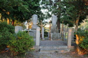 また、古墳の上には2基の石塔があります。石塔にはそれぞれ住蓮、安楽の名が刻まれています。住蓮と安楽はいずれも浄土宗の開祖法然の門弟で、浄土教教団に対する旧仏教勢力からの弾圧が強まるなか、建永元年(1206年)、後鳥羽上皇の女房たちと密通をはたらいたとの嫌疑をかけられ、住蓮は翌年の承元元年(1207)に当地で処刑されたといわれています。この事件は法然の讃岐への流罪、親鸞の越後への流罪などとあわせて、承元の法難と呼ばれています。もちろん、石塔は後の時代に建てられたもので古墳とは直接関係ありませんが、この地域がそうした日本史上の重大事件の舞台になったことを今に伝えるものとして見逃せません。近くの公園には、住蓮の首を洗ったと伝わる首洗いの池もあります。こちらも一見の価値ありです。