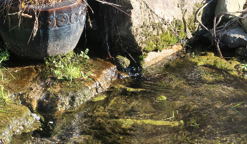 屋敷の基礎から湧き出る清水(山本川の水源)