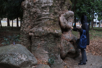 「おう、そんなんおやすい御用や。何時でもおいで、わしに触って、わしの元から生まれた山本川の水に触れたら、癌なんぞ吹っ飛んでしむわ。ほんで、隣の連れの欅みたいにすべすべになれるわ。」