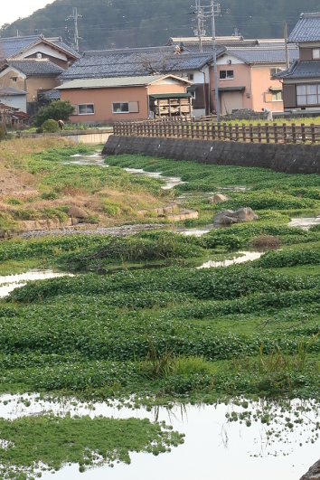 実は愛知川は、永源寺の谷合を流れている間は豊富な水量を誇りますが、平地に至ると多くの水が伏流してしまいます。さらに平野部の上流には堰が造られ、水を取るので、五箇荘付近では、殆ど水がありません。そこで、頼られたのが、愛知川の伏流水です。箕作山の麓にある伊野部は、愛知川の伏流水が箕作山の根っこに当たり、自噴する湧水地に立地しています。村の彼方此方から水が湧き出、いきなり川幅の広い山本川が生まれます。