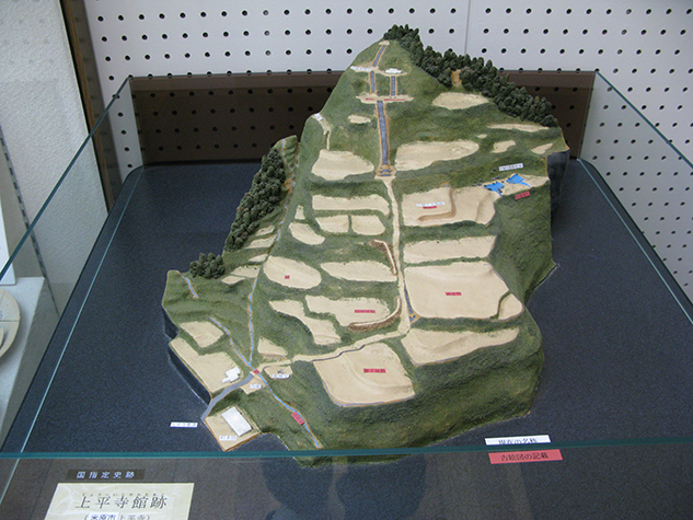 【展示室4】は「掘り起こされた伊吹の歴史」のテーマで、発掘調査で出てきた考古資料が展示されています。伊吹山麓付近の人々のくらしが、旧石器から稲作の開始、中世の山岳信仰や戦国期にかけて考古遺物と模型などの資料でわかりやすく解説されています。特に職員の手作りのによる、上平寺城(じょうへいじじょう)など近隣の山城(やまじろ)の模型がいくつもあり必見です。(写真6)![写真4 最近[展示室3]に来たイヌワシ(幼鳥)の剥製](https://www.shiga-bunkazai.jp/shigabun-shinbun/wp-content/uploads/sites/3/2021/12/71a6019fc4ae0b09df2f298c99d29bf1-250x188.jpg)