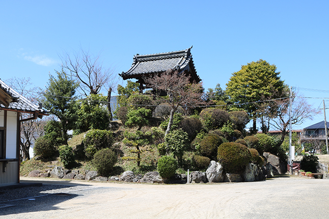では、古墳はどこにあるのかというと、実は、その鐘楼がのる小山こそが久野部(くのべ)1号墳という歴(れっき)とした古墳なのです(写真1・2)。