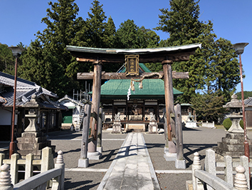 佐治城跡から下ったところには佐治神社があります(写4)。境内にある社歴によると、創立年代は不明ながら、棟札に文明2(1470)年卯月十九日遷宮時に大檀那佐治美作守為氏によって佐治城の鎮護社として建立されたとされます。現在の社殿は延享元(1744)年に再建されたものです。