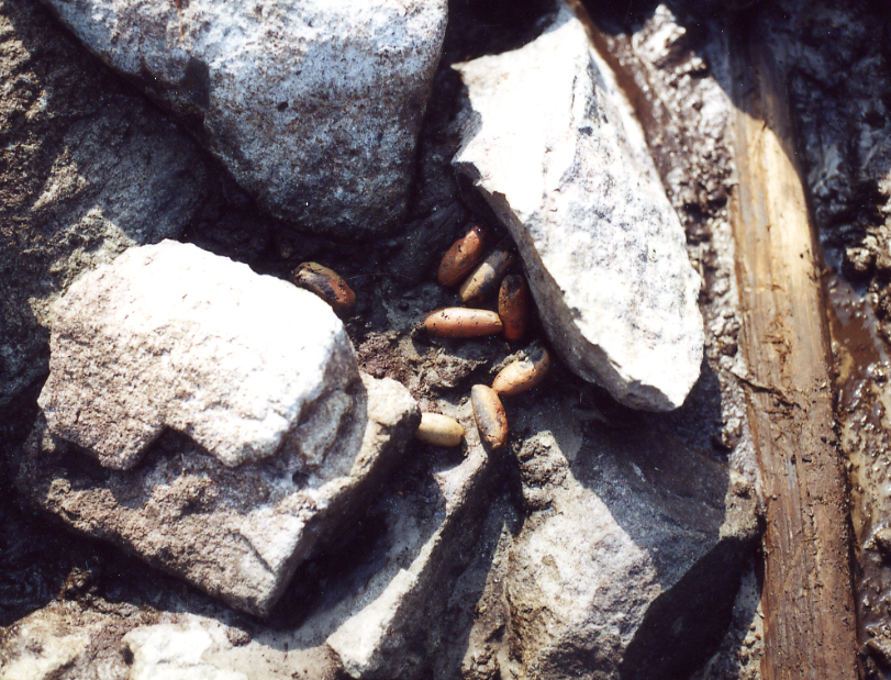 大中の湖大型植物遺体は、第一遺構中央部の石敷き上面から、任意に採取したものです。採取と同定は、縄文時代の粟津湖底遺跡(第三貝塚)から出土した、大型植物遺体の同定を行った、同僚の中川さんにお願いしました。(中川さんの協力に感謝しています。)