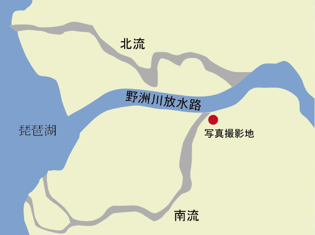 日本最大の湖である琵琶湖には、大小多数の川が注ぎますが、そのひとつに野洲川があります。流域面積は387㎢を誇る、県下最大の河川です。流域面積が広い河川であるためか、水量が豊富であるとともに、流入土砂の供給量も多くなります。従って、勾配が緩い河口付近では土砂の堆積が著しくなり、三角州を形成しつつ、大小の流路が入り乱れる地形となってしまいます。このような不安定な地形は、耕作地としての開発が困難ではありますが、河川を制御することにより、開発が可能となります。