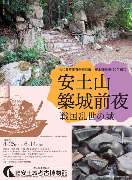 このたび、安土城考古博物館では、上記のような流れにスポットを当てた春季特別展──安土城築城450年記念「安土山築城前夜 戦国乱世の城」──を開催します(会期:令和8年4月25日~6月14日)。詳しくはこちらの【公式サイト】をご覧ください。皆様のお運びをお待ちしております!