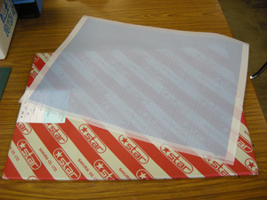 ところが、近年のデジタル化の波がこの紙にも押し寄せています。従来は、土木関係の工事図面や機械工学などの図面作成などにも使われていたようですが、デジタル化によってコンピューターの画面上での作業やデジタルデータでのやり取りが主流となり、わざわざ紙に図面を描いたり、紙に打ち出す必要がなくなっているようです。そのため、方眼マイラーの需要が激減し、生産が大幅に縮小され、今ではロール状のものは生産中止になり、A2版のカットした規格のものしか手に入らなくなっています。