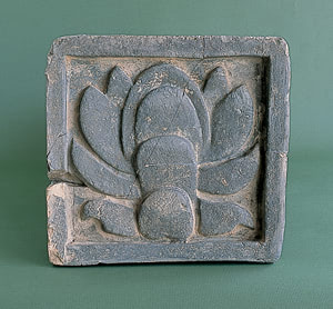 日本の古代寺院は、甍の先端に単弁蓮華文軒丸瓦や複弁蓮華文軒丸瓦などを配しています。軒丸瓦の瓦当(がとう:文様を施した部分)は、蓮の花をモチーフにして、それを上から見た構図になっています。複弁蓮華文軒丸瓦(ふくべんれんげもんのきまるがわら)は、飛鳥の川原寺跡から出土することから川原寺式と呼ばれ、多くの白鳳寺院や上記の四寺院跡からも出土しています。川原寺は、母斉明天皇の菩提を弔うため中大兄皇子が創建したと伝わっています。ところが、南滋賀町廃寺から蓮華文軒丸瓦と異なる「蓮華文方形軒瓦」(れんげもんほうけいのきがわら)とよばれる瓦当が四角く、蓮の花を横からみた文様の瓦が出土します。その文様がサソリに似ているところから通称「サソリ文瓦」とよばれています。
