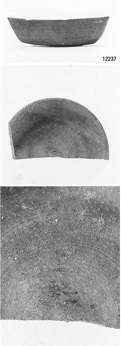 墨書土器を観察していると、1点の土器に目が留まりました(写真3)。この土器は須恵器の杯というお皿なのですが、土器の内側に「上殿」と書かれていました。それ以外では、書く場所の違いはあるものの、もれなく土器の外側に墨書されています。いうまでもなく、お椀は食べ物を入れて使うもの。ですから、食べ物を盛る土器の内側に書かれることには違和感を覚えました。なぜ内面に書かれたのだろう?そんな疑問をいだき、自分なりに考えてみることにしました。