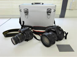 そこで新たな記録写真の相棒として導入されたのが『フルサイズデジタルカメラ』です(写真2)。これによって今まで4台使用していたカメラは、2020年度から2台のデジタルカメラ(写真3)にバトンタッチされることとなりました。個人的にうれしかった点として、4台のカメラが入った重たいカメラバックを担いで移動していたときは肩にアザができていましたが、これがなくなったことです。