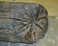 ちなみに長さが3mを越す1段階目の丸木ですが、さすがにこのまま持ち帰ることもできなかったので、切断面部分のみをチェンソーで切り、そこだけを持ち帰ることにしました。現在は保存処理も施され県立安土城考古博物館内の収蔵室で保管されています。